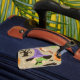 Halloween vintage mönster-bagagetapp som innehåller knivar, häxa och fladdermöss som ska läggas till i din samling med Halloween-resetillbehör.