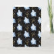 Vit spökduk på svart bakgrund med spindelnät som dekorerar de övre hörnen på gratulationskortet. Designen på baksidan av kortet har en ljusstake och kusliga spindelnät i de övre hörnen.