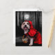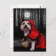 Hund Highland Terrier som är klädd i hennes lilla Huva Red Riding-kostym för oss i en mycket pookisk skog på väg till farmors hus. Porträtt togs i Teagarden Pet Salon för 2013 års Halloween-säsong. Bakgrunden är fylld med träd som är uppslukat av låg ljugande dimma som är markerad med ett slående fullt. Om du vill visa hela fotobilden klickar du på över till www.FrankzPawPrintz.photoreflect.com