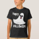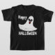 Vitt spöke med rött öga och mun och svart. Black grått blixt vid öga. Happy halloween är skrivet i vitt teckensnitt för coola. Originalteckningsutkast av TamiraZDesigner.