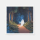 Vitt spöke som flyter i en mörk skog för Halloween fest.