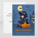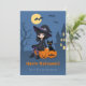 Halloween Witch, Black Cat, Curved Pumpkins Family Julkort