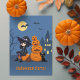 Halloween Witch, Black Cat och Pumpkins Party Inbjudningar