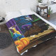 En magisk brun chokladkatt med en lila häxhart sitta på bokar. Cauldron, pumpor, potioner och trollspö sitter bland katten.