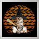 Den här lustiga kattälskaren Halloween helgdag är en underbar gåva till en man, kvinna, tonåringar och barn som kärlek katter & Halloween. Inköp av bära som en del av en kostym till ett Halloween fest eller medan man trimmar eller behandlar. Om du kärlek Fall, pumpor, Halloween, häxor och katter, är den här festdesignen till dig! En lustig bild av en tabby kattunge som bär en häxhatt och håller en bom, sitta framför en orange-scoky fladdermus mönster.
