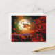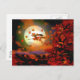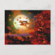 Ett Halloween-vykort med mitt verk av silhuetten av en häxa som flyger av en spooky fullt på Halloween-natten, som rör om höst löv.