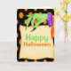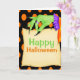 Halloween-häxor har hand om en anteckning som säger Happy halloween.. Halloween-hälsningskort ... med häxa på en orange och svartfläckad bakgrund.. levereras med vita kuvert ..hälsningskort av Ricaso vissa bilder med CU-licens delightful-doodles.com