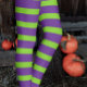 Halloween Witch Lila Grönt Stripe Stockings Leggings