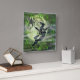 En grönt Halloween-helgdag-grafik av fullt måne och en silhuett av en häxfluga framför den. En spindel faller ner och det finns websar i hörnen. Gröntarna för varje timme är i en hopkörd kvadratisk form på klockan ansikte. Den här skokusdesignen ger dig en unik gåva till ditt hem eller kontor. Du kan eventuellt anpassa den här digitala designen genom att klicka på knappen Anpassa om du vill lägga till text eller teckningar.
