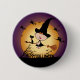 Den lilla häxan som flyger av på hennes pjäs med katten till Halloween fest.