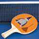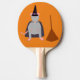 Den här pingpongpaddeln i fantastisk har en digital bild av en söt grått råtta-häxa med rosa öron, näsa, fötter och svan. Råtta har en svart spetshatt med ett guld-låsbeslag och lila stjärnor över hela den. Råttor bär också en svart täckmantel som också är täckt av lila stjärnor. Bredvid råtta finns en brun broom av vrister. Råtta är utklädd till redo för ett Halloween fest.