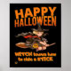 "HALLOWEEN WITCH RIDES STICK" lustigt Poster
