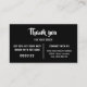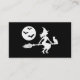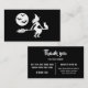 Småföretag tackar dig för din orderkortsutformning med Desteis minimalistiska Halloween-silhuettdesign av en lång hårhäxkvinna som flyger på en broomstick. Häxan har en lång klänning, höga klackskor och en häxhatt. Måne skiner bakom häxan och det finns tre fladdermus som flyger över den. En katt sitter på framsidan av pannan. På andra sidan finns det textområden som kan anpassas till många.