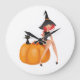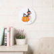 HALLOWEEN VITTAR SITTA PÅ PUMPKIN MED SVART KATT.