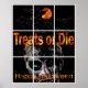 "Treats or Die" Halloween Zombie Poster en underbar Halloween-dekoration. Kom ihåg att alltid ha gott om behandlingar till Halloween Zombies