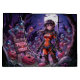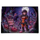 Månen hängde lågt och kastade kusliga skuggor över den övergivna staden. Sarah, iklädd sin stridsslitna, fantasifulla bikini-rustning, stod vid kanten av ett öde torg. Det var Halloween ikväll, och i denna postapokalyptiska värld hade de odöda sina egna bisarra traditioner. Istället för godis bjöd de på hjärnor. - En horde av sladdrande zombier närmade sig, deras ögon glödde med en onaturlig hunger. Sarah grep tag i sitt svärd, hennes hjärta dunkade i bröstet. Hon hade sett detta förut, de odödas årliga pilgrimsfärd till stadens centrum. Men i år var något annorlunda. En glimt av busighet gnistrade i några av zombiernas ögon. -