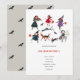 Söt röd svart och lila Halloweenfest för barn med barn utklädda till Dracula, djävul, häxa, räv och en svart katt. Originalkonst av Caroline Bonne Müller