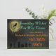 Dessa kusliga Halloween-inbjudningar visar siluetten av en svart kråka, som sitter i ett mörkt träd över en kyrkogård i dimman. Bakom den lyser den stora fullmånen. Det finns en svag spindelvävform i dimman. Den lysande, lockiga gröna texten säger, "Something Wicked This Way Comes", från häxorna i Shakespeares "Macbeth". Resten av texten (fram- och baksida) kan anpassas i denna enkla mall. Om du älskar gotiska skräckscener och anordnar skrämmande Halloween-fester, kostymfester eller födelsedagsfester, är dessa unika inbjudningar för dig! TIP: "Anpassa" om din text blir för lång, och du kan justera teckensnitt och storlekar.