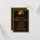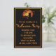 Bjud in dina vänner och familj till din kusliga Halloween-fest med dessa orange och svarta inbjudningar. På baksidan och längst upp på framsidan av inbjudan finns en bild av en stor orange och gul måne. I silhuett syns en svart katt sittande bredvid en pumpa med ett urgröpt ansikte och lysande ögon. Två svarta fladdermöss flyger över månen. Nedan finns mallar med orange text för att lägga till dina detaljer om festen genom att ersätta exempelttexten.