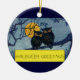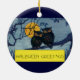 Halloweenhälsningar från förr, ugglor i träd med m julgransprydnad keramik