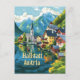 En bild och nostalgisk bild av Hallstatt, Österrike, som är känd för sin fantastiska alpina miljö, historiska charm och pituresque vid havsviken. Utformningen fångar byns ikoniska pastel-färgad som reflekteras i det tysta vatten på Hallstätter See (Sjö Hallstatt), omgiven av bergsberg. I en vintage stil ger konstverket upphov till Hallstatts friska skönhet och tidlösa allure och uppmanar tittarna att uppleva sina idylliska landskap och rikens kulturarv.