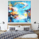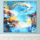 A luminous ring of motion drifts through layered blues, golds, and softened whites, evoking the meeting point of sky and water. Textured strokes and cascading marks create a sense of suspended energy—both turbulent and serene—while warm accents ignite the cool field beneath. Halo of Tides invites contemplation of balance and passage, capturing a moment where movement gathers into calm before dispersing again.