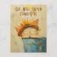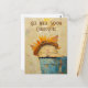 🖤 Anpassad Hälsa Snart Katt Postkort. Njut av den lekfulla charmen i denna oljemålning som visar en söt, vilsam katt som bär en solroshatt, hoprullad i en växtkruka. Baska sig i solens värme, katten utstrålar en lugn och tillfreds aura.