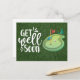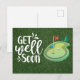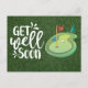 Hälsa snart golfspelare med två golfbollar och tee vykort