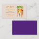 Ett affärskort som lämpar sig för en dietist- eller närings-, Hälsa- eller hälsocenter. Det här kortet är snyggt, elegant och har en originalbild av en sund morot mot neutraltens bakgrund som illustreras av konstnären Sacha Grossel. Det här kortet är helt anpassade att inkludera dina egna personuppgifter och kvalifikationer.
