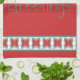 Säsongens hälsning-text på diskhandduken kan ändras till vilket budskap som helst och till vilket färg som helst. Lejdrött kan också bytas till vilken färg som helst och skapa en vacker juldekoration till ditt hem.