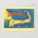 En vintage illustrerade karta i Cape Cod, Massachusetts, som återföreslogs på ett nytt vykort.