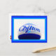 Ett stängfoto av ett vitt och blått vatten torn i Chilton, Wisconsin är subjekt i mitt "Hälsning från Chilton Wisconsin!" vykort. Ett gräns i två skuggor av blått kompletterar min vykorts frambild.