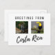 Svart och vit typografi "Hälsning från Costa Rica" "design Costa Rica vykort". Anpassa med två av dina foton eller min för behålla. Skriv ut med ditt meddelande, returadressen och adress på den person du skickar kortet till. Om du vill lämna tomt för handskrivning raderar du bara text från mallen före beställning.