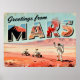 Bläddra till en värld av vintage med Hälsning från Mars retro-sci-fi-poster, inspirerad av klassisk Hälsning från vykort. Den här utformningen fångar charmen och fantasi hos rymdfärjekonsten i mitten av 1900-talet, blandar fet färg, nostalgisk typografi och kosmisk äventyr. Perfekt för rymdentusiaster, samlare eller någon som kärlek en aning retro flair transporterar dig till den röda planeten med en lekfull nod för att posterkort nostalgi.