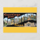 Guld och svart vykort med Alamo och Hälsning från San Antonio Texas.