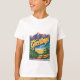 T-shirt-designen har en nostalgisk och reseinspirerad bild: en retro-vykortsdesign med sceniska berg eller stränder, med frasen "Hälsning från..." i fet stil, vintage. Den här utformningen framkallar en känsla av nostalgi och avtagande lust, som tilltalar dem som uppskattar vintagens estetik och resor.