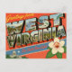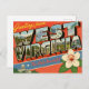 Researtiklar mellan vintage och stil med Hälsning från Väster Virginia-utformning. Detta djärva, färgstarka vykort visar på ikonisk bergstradition, inklusive vattenfall, lush-skogar och Huvudstad. Perfekt för samlare, WV-infödda eller raming som retro Americana decor. Utmärkt detaljrikedom och en klassisk stripe-bakgrund.