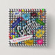 Den här kvadratiska symbolen har en design som simulerar en graffiti. Utformningen är lekfull och innehåller hälsning på olika språk på vibrerande färgstarkt stänk och linjer i bakgrunden av en simulerad stängsel. Alla inslag är anpassade. Du kan ändra deras färg och positioner och ta bort oönskade detaljer. Du kan också ta bort texterna och ersätta dem med vad du föredrar, med Zazzles text verktyg.