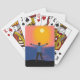 En man står på en strand som är vänd mot öppet hav och saltar gulten sol med upphöjt arm.