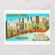 Reproduktion av ett gammalt stort brevkort med "Hälsningar från Indianapolis, Indiana".