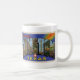 Hälsningar från Houston, mugg för Texas vintagestor-brev vykort. Vykortet visas på båda sidor av muggen.