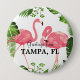 Hälsningar från Tampa, Florida, tropisk design med palmkvistar och vackra rosa flamingos.