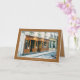 Hälsningkort som är dagligt - bekläda på ett foto av en Paris, frankrikegata och insida ord: "Bonjour!",