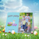 Glad påsk Önskemål hälsningskort: Fira Påsk med detta charmerande hälsningskort! Det visar en härlig basket fylld med en glädje under våren, en färgstark äggkopp och en nyfiken bunny tittar inuti. Med sitt sjudande pastellprogram färg och sin visuella utformning är detta hälsningskort ett underbart sätt för Påsk att glädja sig åt sina nära och kära. Du kan anpassa koppen med dina favoritfoton eller favoritmeddelanden.