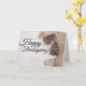 Anpassa meddelandet på det höstinspirerade hälsningskortet med gräs-koner på en rustisk träbakgrund.
