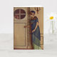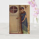 Foto av kvinnahälsningen en besökare i en elegant robe, från en tidskrift för 1911 mode.