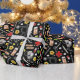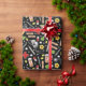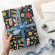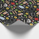 Kreativt medicinskt gåvupapper för läkare eller annan vårdpersonal med medicinsk utrustning och blommor på svart bakgrund.