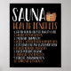 Sauna och hälsa utformar perfekten som gåva till bastu älskare eller manar, kvinnor som är herrar över den finska bastun- och bastunamästare i kärlek. Denna bastuneutrustning är lämplig för spa, termiskt bad, bastunaslappna av och har roligt.