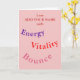 Hälsobekräftelser får bra kort. Ord av hälsovård för dig själv eller som läkande uppmuntran för en vän eller familjemedlem som bor med ett kroniskt sjukdom. Det nuvarande ord på kortet är Energy, Vitality Bounge. Du kan ersätta ord med vilket ord som helst. Om det är för en vän, kontrollera att er uppmuntrande ord inte kommer till ljud som ett förnekande av er eller påtryckningar för att de ska återhämta sig. Anpassa kortet genom att skriva ut namn på din vän eller familjemedlem. Du har också möjlighet att logga in på Zazzle och anpassa kortet så att det blir ännu mer din egen design. Detta kort har varit designat av en PWME (person med Myalgic Encephalomyelit). Det är särskilt lämpligt för någon som använder lagen i Attraktion för hälso- och sjukvård, för kristna som talar hälsa med sin kropp, för NLP studenter, för hynoterapientusiaster och för dem som är intresserade av den psykoneuroimmunologiska vetenskapen som säger att vi kan påverka vår hälsa med ord och våra tankar. Hälsointygen är på rosa. Byt ut instruktionerna mot ett eget speciellt personligt meddelande om att skicka kortet direkt. Se till att markera det som en gåva. Eller ta bort instruktionerna om att köpa den tomt.