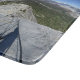 En panoramisk jordglob-vy tittar ner från halvtornkablarna. Kalifornien, Sierra Nevadas berg, Yosemite National Park, Yosemite Valley. Av John Muir Trail nära Mile 006.